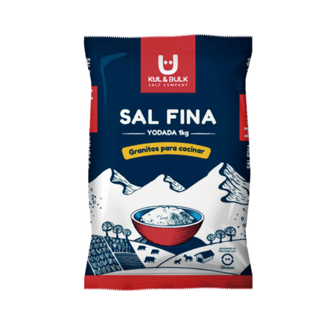 Sal fina Kul & Bulk en formato de 1 kilo, pack de 10 unidades. Producto esencial para almacenes, minimarkets y negocios de barrio. Imágenes referenciales. Entregas dentro de la Región