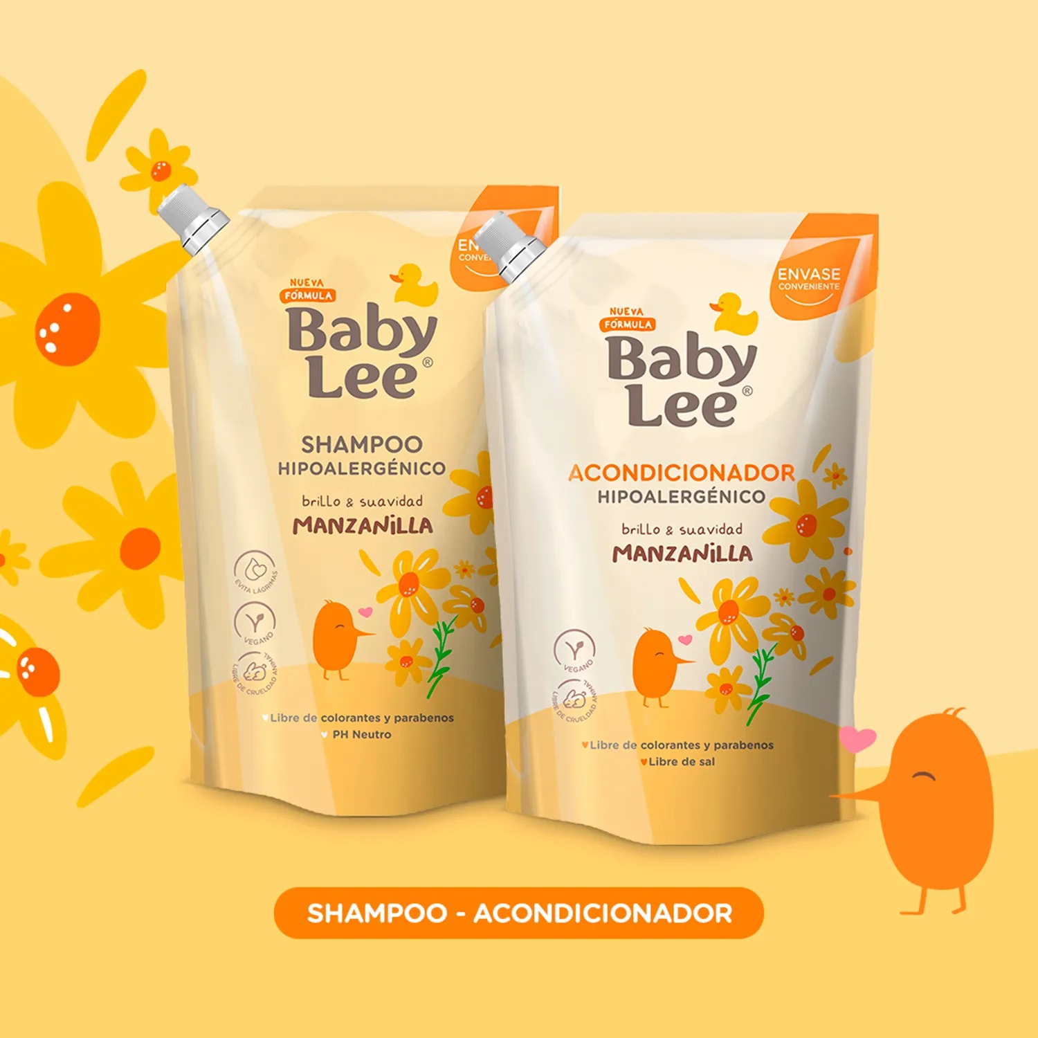 Shampoo Babylee Manzanilla Doypack 900ML, limpia suavemente el cabello de bebés y niños, dejando un aroma fresco y natural. Ideal para uso diario. Caja con 10 unidades. Imágenes referenciales. Realizamos