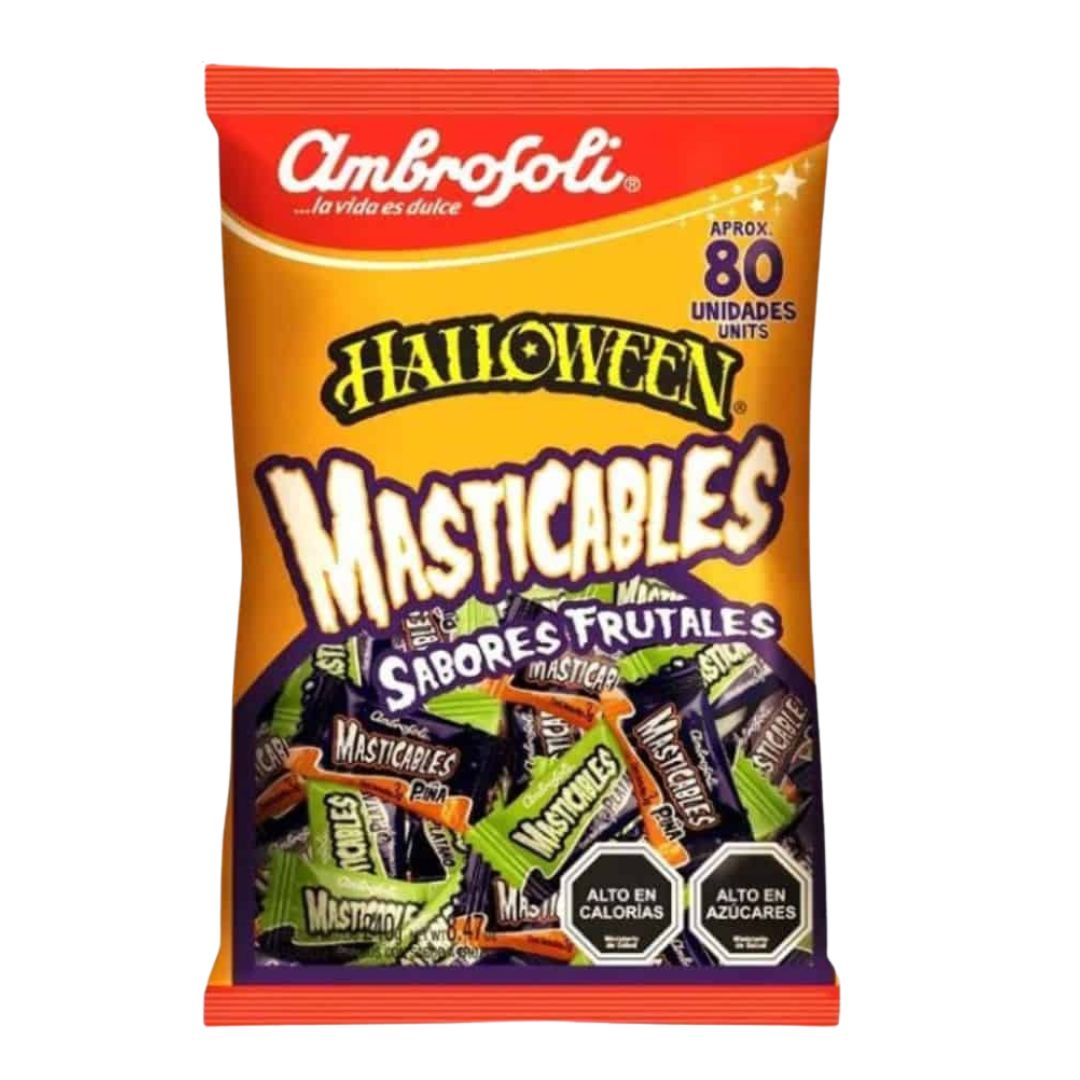 Los Masticables Halloween Flowpack son la opción perfecta para disfrutar y compartir en esta temporada de Halloween. Cada bolsa contiene 80 unidades individuales, ideales para repartir entre niños, visitantes o incluir en bolsas de regalo y eventos escolares.