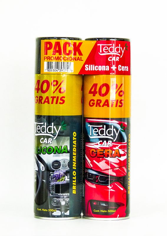 Pack TEDDY con silicona spray y cera automotriz. Brillo y protección total para tu vehículo.Caja con 6 packs.Despacho dentro de la Región Metropolitana.Imágenes referenciales.