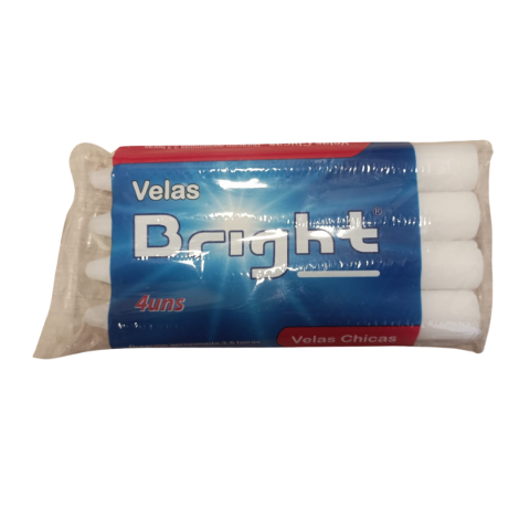 Velas Bright Chica Paquete de 4 Unidades Caja X40 Paquetes:Velas Bright pequeñas, cada paquete contiene 4 velas de 14 cm de largo por 1.5 cm de ancho. Presentación en caja