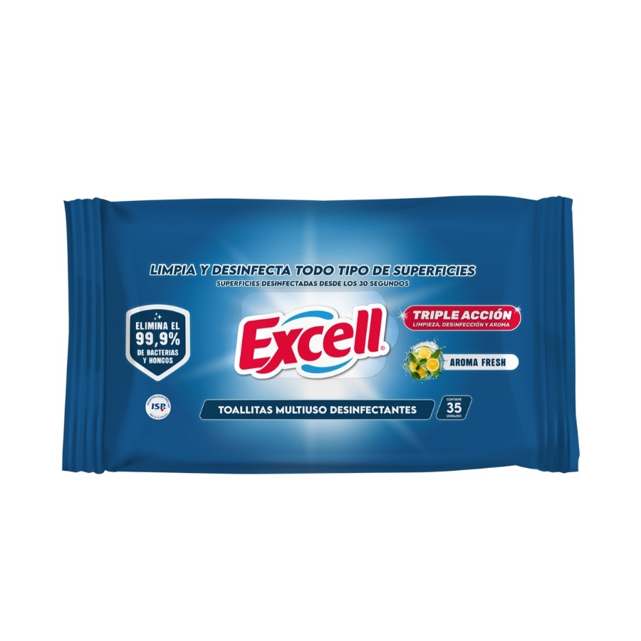 Las Toallas Desinfectantes EXCELL x35 son prácticas y efectivas para limpiar y desinfectar superficies de manera rápida y segura, eliminando gérmenes y bacterias comunes. Su formato en toallitas húmedas facilita la higiene en cualquier lugar, siendo una solución cómoda para el hogar, oficina o negocio.