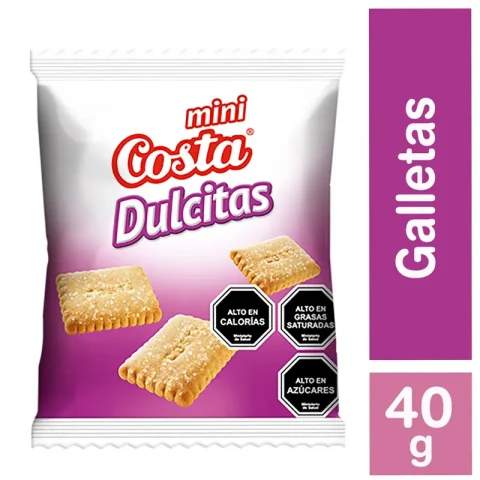 Disfruta de las Galletas Mini Costa Dulcita en formato 30 paquetes x 35g, ideales para picar en cualquier momento. Su sabor suave y dulce las convierte en la opción perfecta