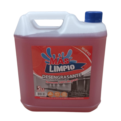 Desengrasante MÁS LIMPIO bidón 5L. Potente limpieza de grasas difíciles. Ideal para almacenes, PYMES y uso industrial. Despacho en la RM. Imágenes referenciales.