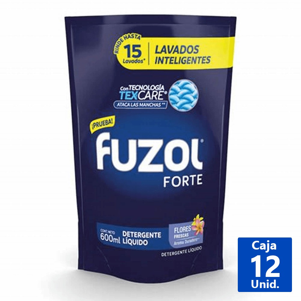 Detergente Fuzol Forte Doypack 600ml, caja con 12 unidades. Fórmula concentrada y eficiente. Imágenes referenciales. Despachos dentro de la Región Metropolitana.